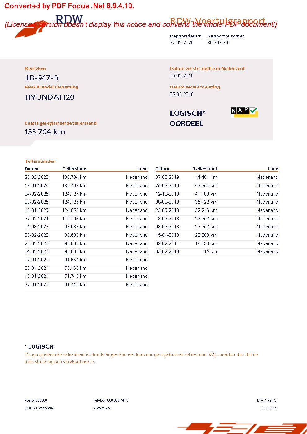 Kilometerstand135.704 km